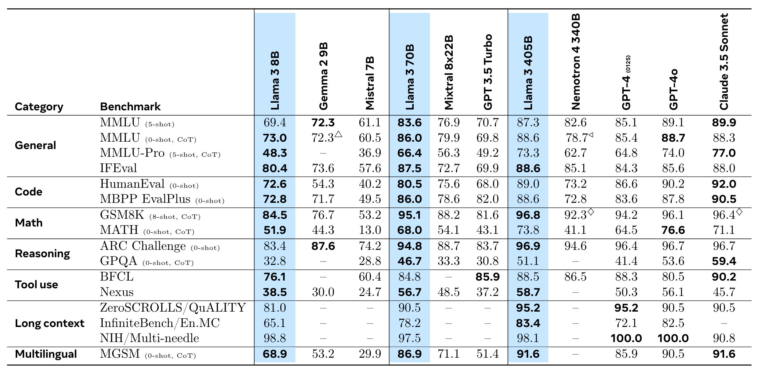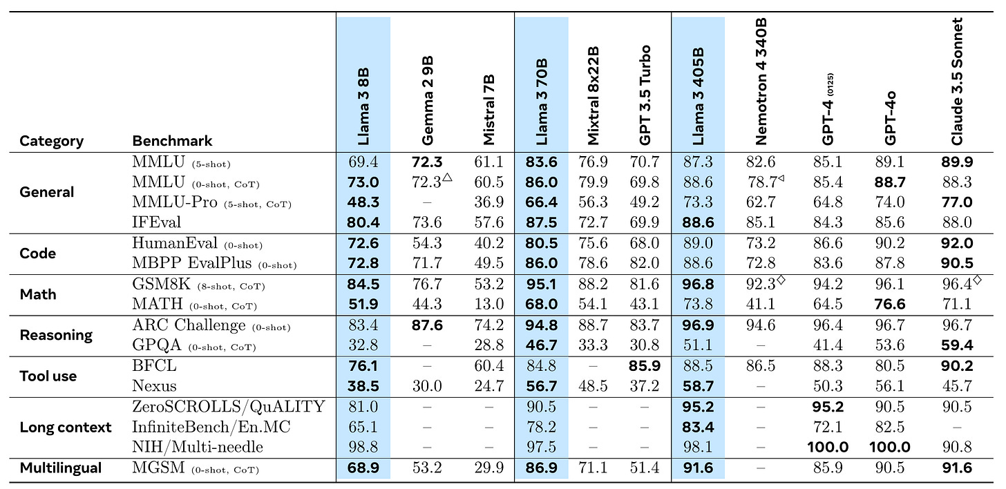 Llama 3.1 is a game-changing 405 billion parameter open-source AI model that supports multilingualism (fun fact, this was an emerging ability from large datasets and works with surprisingly little “other language” data!), coding, reasoning, and tool usage, matching or surpassing closed-source models like GPT-4 (0125) in various benchmarks. Its open-source nature democratizes access to cutting-edge AI technology (following the steps of GPT-2, GPT-Neo, GPT-J), enabling businesses and developers to leverage state-of-the-art language models without vendor lock-in, while its competitive performance and extensive functionality make it highly attractive for researchers and businesses looking to fine-tune and deploy advanced AI at lower costs.